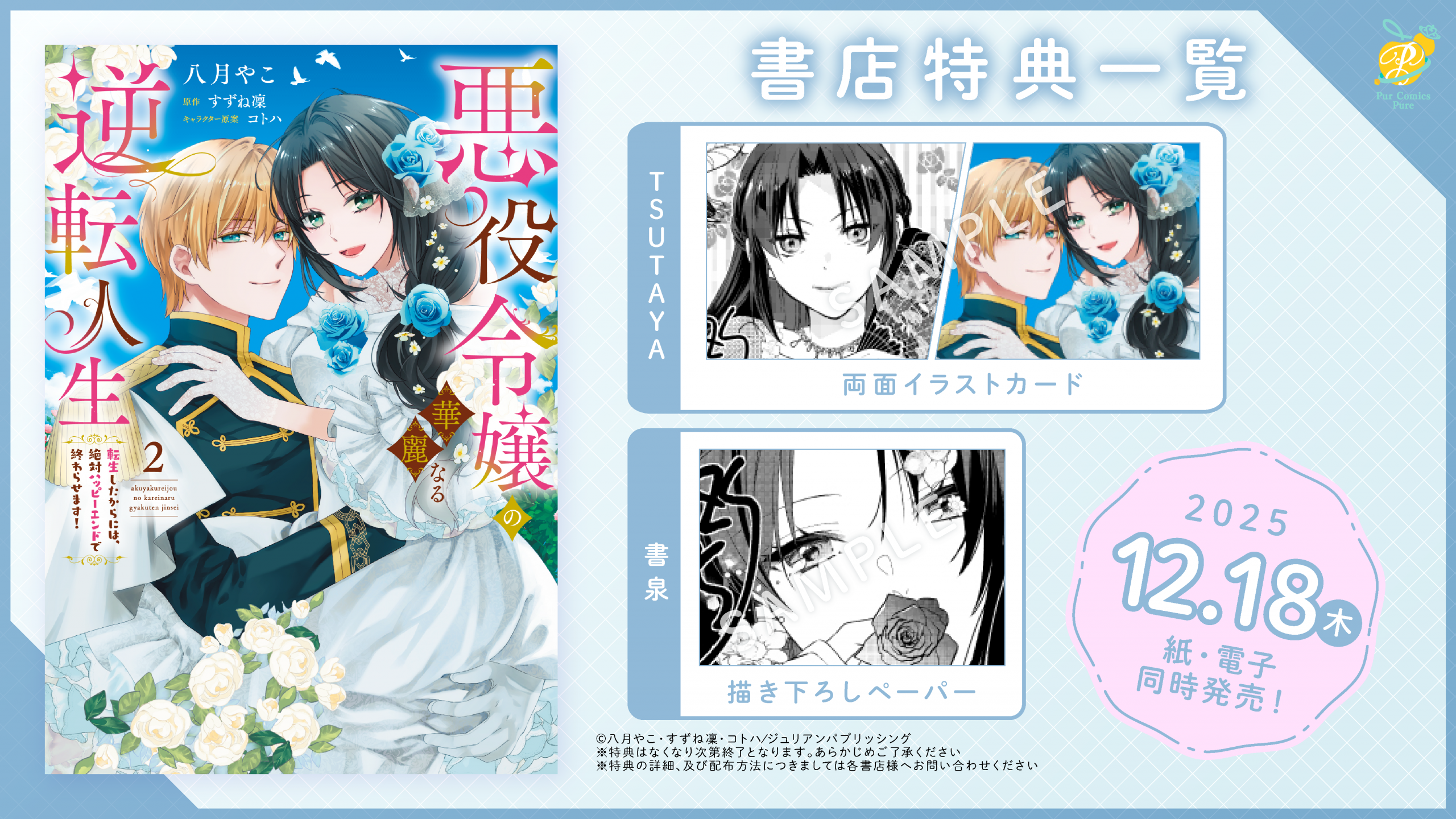 PurComicsPure「悪役令嬢の華麗なる逆転人生~転生したからには、絶対ハッピーエンドで終わらせます!~(2)」のコミックスが12月18日(木)発売!