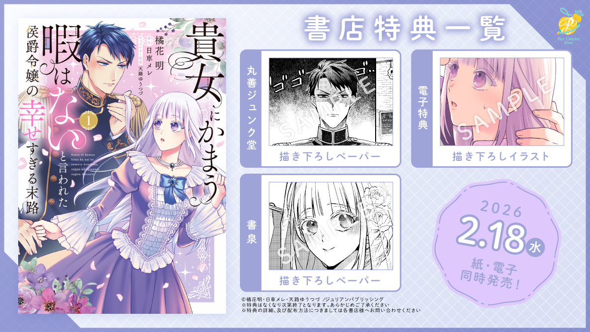 PurComicsPure「貴女にかまう暇はないと言われた侯爵令嬢の幸せすぎる末路(1)」のコミックスが2月18日(水)発売!